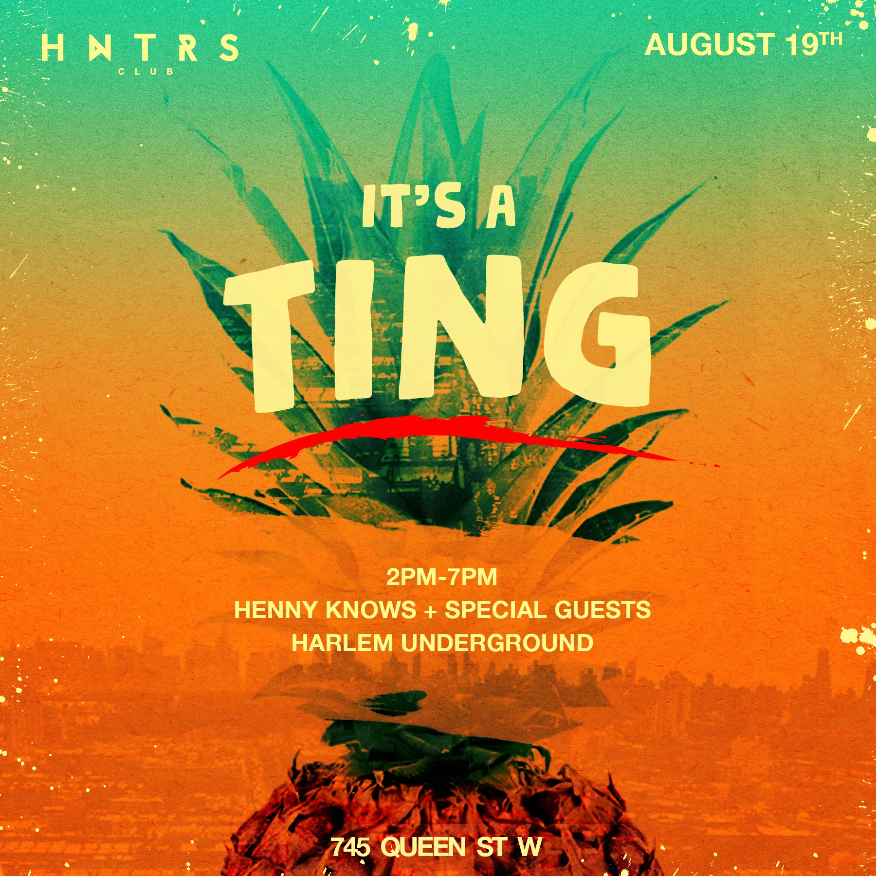 It's a TING Saturday, August 19, 2017 2:00 p.m. 7:00 p.m. Harlem Underground 745 Queen Street West Toronto, ON, M6J 1G1 Canada (map) Google Calendar ICS